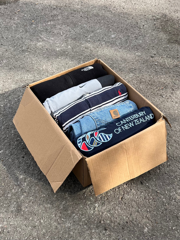 Each Mystery Box includes a surprise mix of authentic vintage clothing, such as tops, jackets, denim, or accessories. Expect a mix of vintage pieces from a range of some of the biggest vintage brands including Nike, Carhartt, Ralph Lauren, Wrangler, Levi’s, Adidas, Tommy Hilfiger, Berghaus, Stussy, Patagonia, Diesel and more. Every piece is chosen to reflect today’s trends while keeping that reviving the retro vibe.